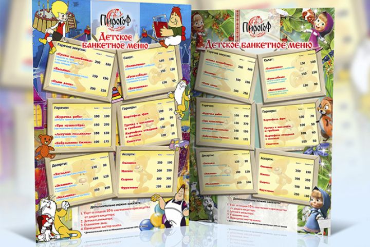 детское меню для ресторана