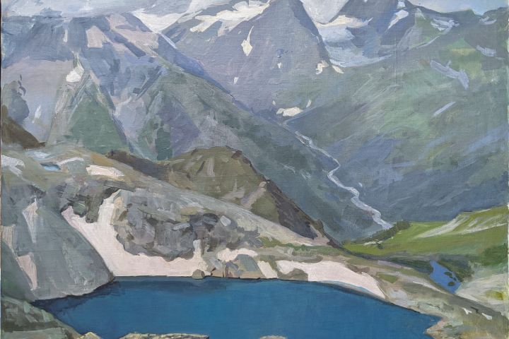 Этот пейзаж я написала с натуры, акрилом на холсте, на подрамнике 59×74 см в 2022 году, во время творческого пленэра, многодневного похода к озёрам Архыза.