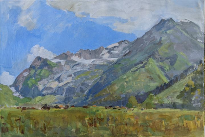 Работа выполнена акрилом на холсте 54,5×79 см, на пленэре в горах Карачаево-Черкессии, неподалеку от посёлка Архыз в 2022 году.