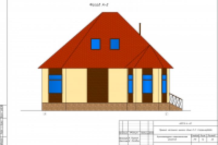 Баня с террасой, вариант из оцилиндрованного бревна, 3D