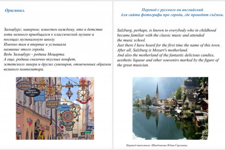 Перевод с русского на английский для сайта фотографа про города, где проводят съёмки.