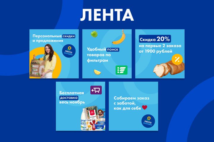 Дизайн постов для соц.сети "Ленты". Оформлении в соответствии с брендбуком компании. Адаптация под сториз, телеграм, ВК