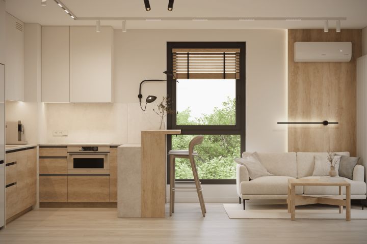 Визуализация по готовому ТЗ от дизайнера кухни-гостиной и коридора в квартире 56 м2.