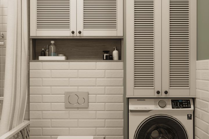 Визуализация по собственному дизайн-проекту санузла в студии 27 м2.