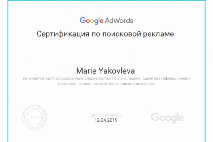 Сертификат Google Adwords - Поисковая реклама