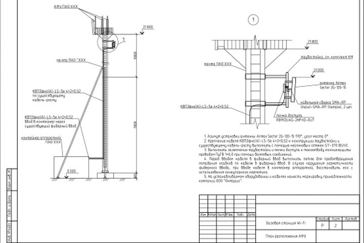 План расположения АФУ БШД (Wi-Fi) на мачте связи