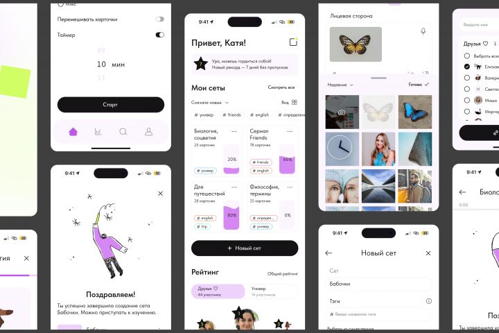 Мобильное приложение, которое помогает запоминать информацию с помощью карточек.