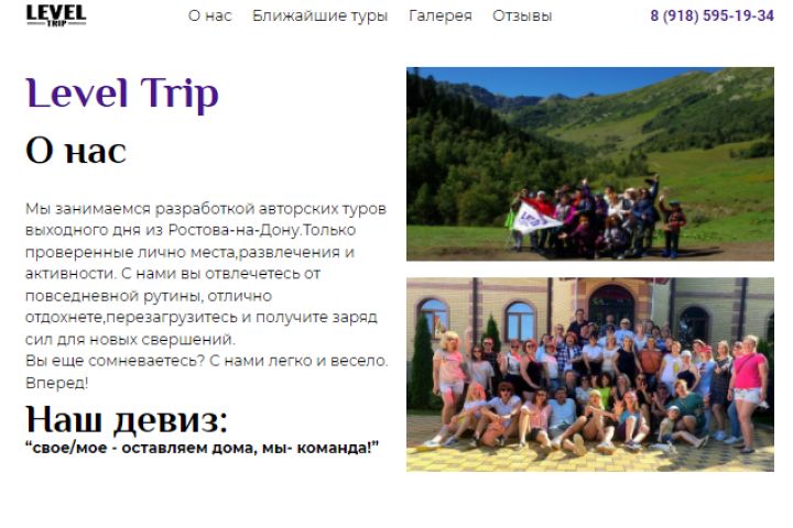 Сайт компании, занимающийся созданием экскурсионных туров выходного дня. Командная работа с дизайнером от задумки заказчика до воплощения