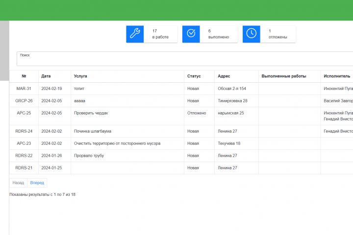 Разработан сервис для приема сотрудником заявок обслуживания домов, а также управления администратором справочниками домов в управлении, сотрудниками и исполнителями работ.