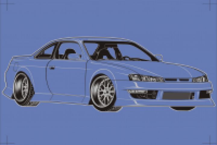 Выполнено для двухцветной шелкографии (серый+черный). Цвет автомобиля задается цветом однотонной футболки.