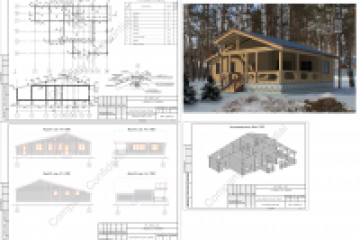 По пожеланию заказчика этот дом выполнен в стиле швейцарского шале - он одноэтажный, распространенный в плане, с пологой двускатной крышей. Дом построен живописном лесном районе Новосибирской области