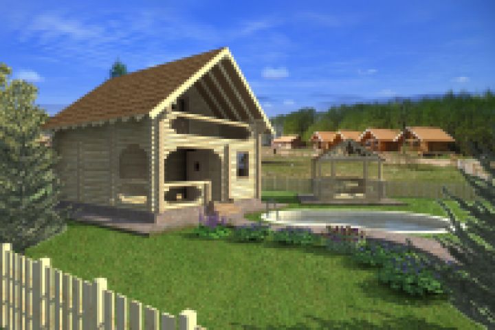 Небольшая комфортная баня с комнатой отдыха в мансардном этаже. Размер бани в плане 6,6х5,6 м: на этой площади компактно помещаются веранда, комната отдыха, парная, душевая, спальная комната