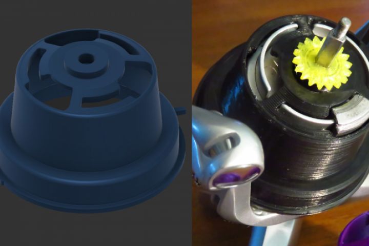 Модель детали рыболовной катушки для последующей 3D печати. Смоделировано по оригинальному сломанному образцу.