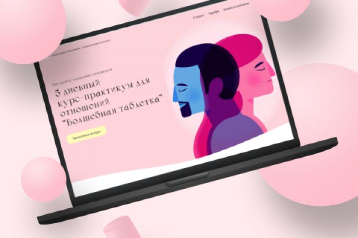 Для сайта были выбраны йогуртовые оттенки и минималистичный стиль, т.к. сайт должен вызывать у посетителей чувство спокойствия. Цветовая палитра полностью соответствует тематике курса - отношения. Дизайн был выполнен в Figma