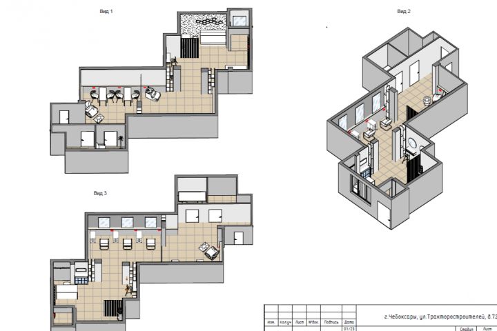 Работаю в Revit. Проект сдаётся в формате pdf или jpg на листах А4, А3 пожеланию заказчика.