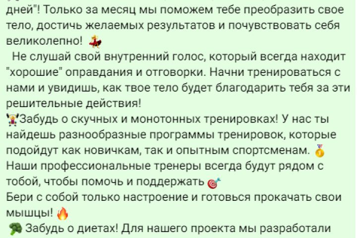 Рекламный текст для фитнес проекта "Стройней за 30 дней"