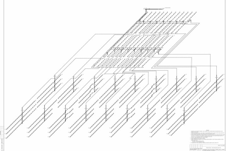 Аксонометрическая схема АУПТ с внутристеллажным пожаротушением