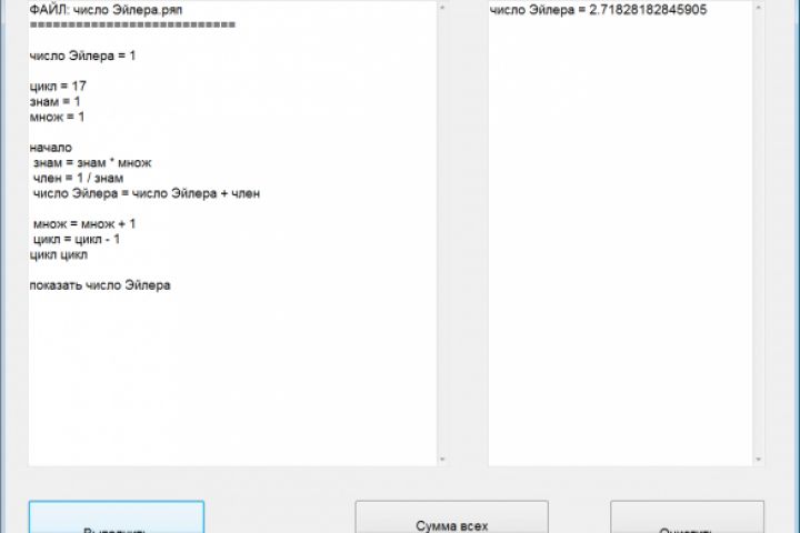 Есть зарезервированные слова: начало, если, цикл, показать,округлить, линверт.