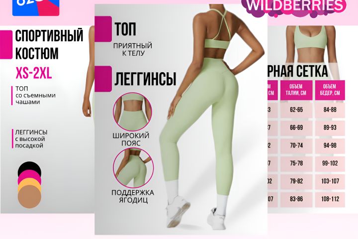 Инфографика ✨️ Леггинсы + топ 🔥 Лаконичный и яркий дизайн!