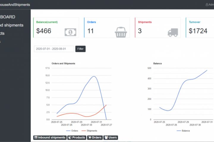 Система управления складской логистикой и поставками. Позволяет управлять поставками, заказами, продуктами и пользователями, просматривать графическую аналитическую информацию и статистические данные