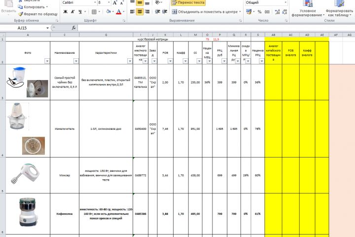 Формирование таблицы в Excel (фото, описание, планируемый объем закупки, ориентировочная цена)