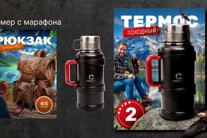 Термос, мужчина, фон и птица сгенерированы в нейросети ReCraft: