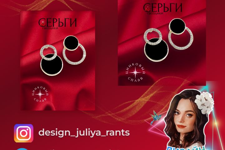 Серьги на сочном ярко-красном фоне, ничего лишнего)