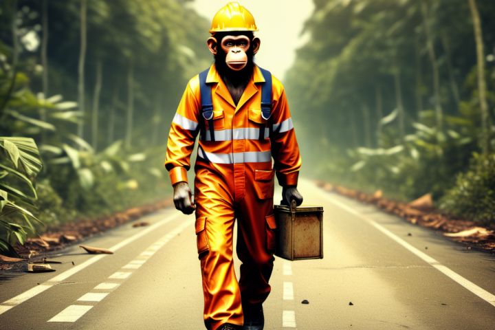 Нарисовал обезьяну дорожного работника в стиле digital