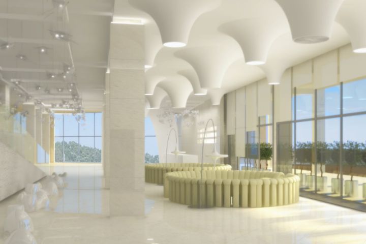 Проектом предусмотрены просторные, светлые и функциональные пространства 1-го этажа жилого комплекса. На полу мрамор, отделка -стекло , панели, мрамор.