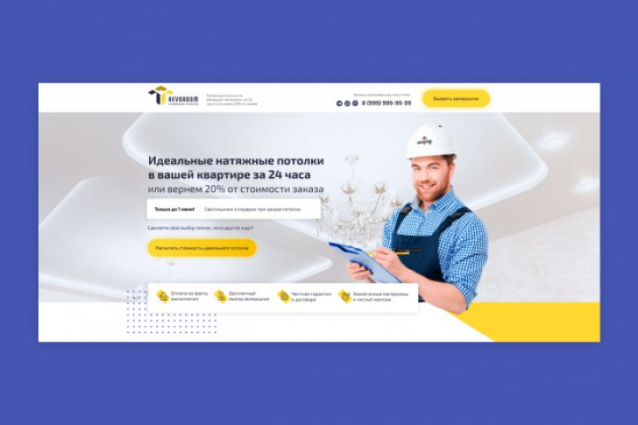 Был разработан продающий Langing page для компании, занимающейся натяжными потолками.