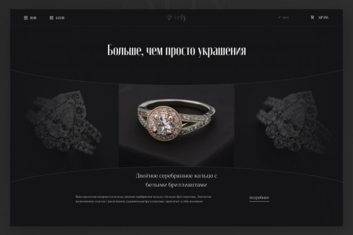 Arly - бренд ювелирных украшений. Проект выполнен в стиле минимализм. Данный дизайн - является экзаменационной работой для онлайн-школы обучения веб-дизайну Yudaev.school