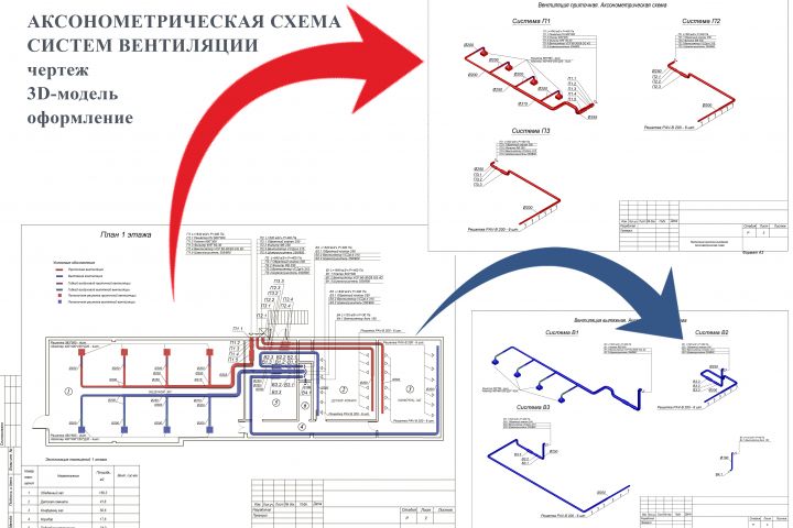Правильное оформление Вашего проекта раздела ОВ (отопление, вентиляция и кондиционирование). Рабочие и исполнительные чертежи, схемы, 3D-модель аксонометрической схемы. Оцифровка проектов, начерченных от руки. AutoCAD MEP, pdf
