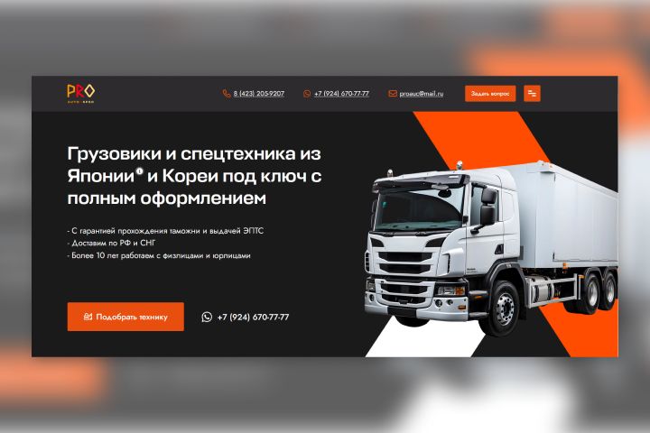 Сделали мультилендинг на 2 страницы на платформе Flexbe для компании, занимающейся подбором и поставкой грузовой и специальной техники, легковых автомобилей из Японии, Кореи и Китая. Совместно с Яндекс.Директом лендинги дают отличный результат.