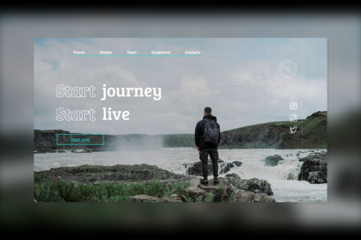 Одна из первых работ на "неторговую" тематику. Требовалось как "обыграть" элементами фоновую картинку, демонстрирующую достижение конечной точки пути (то, ради чего большинство идет в пеший поход), так и за счет легких линий и изображения компаса оставить намек на карту.