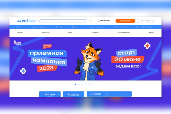Разработали для Дальневосточного Федерального Университета сайт приемной комиссии для приема обращений от абитуриентов. Реализовывали на платформе Bitrix. Реализовали полноценный калькулятор для подбора подходящих образовательных программ по результатам ЕГЭ.