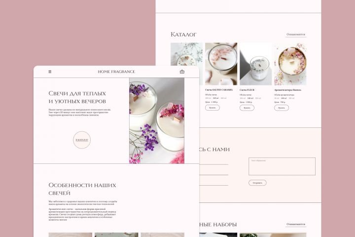 Аромасвечи - это уют и тепло в наш дом. Landing Page для магазина ароматических свечей. Красиво и утончено показать ручную работу. Свечи лучшего дизайна по лучшим ценам. Буду рада сотрудничеству!