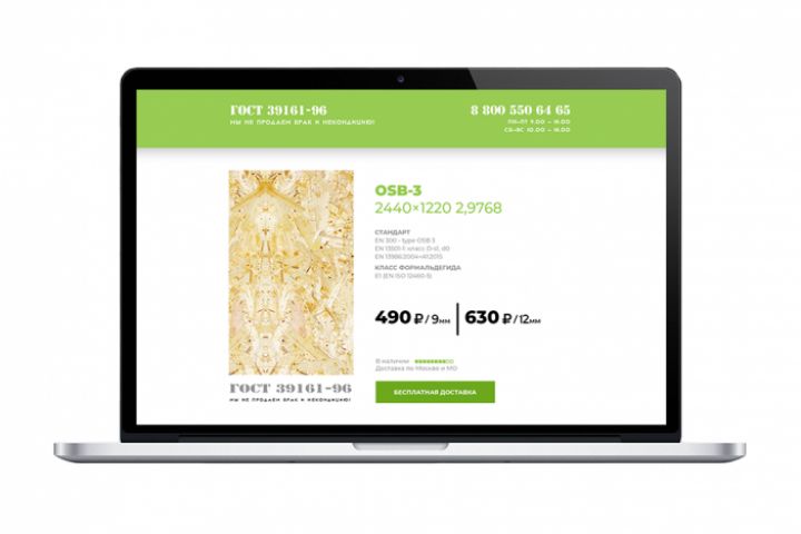 Действующий лендинг по продаже плит OSB-3 с захватом телефона клиента