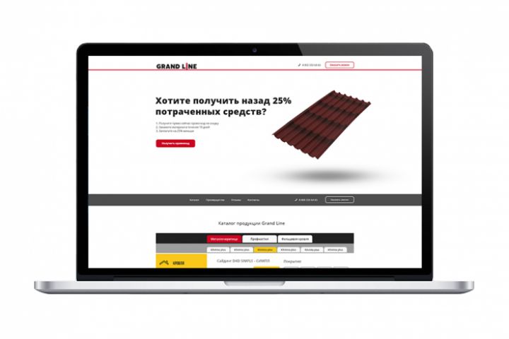 Сайт компании-дилера Grand-Line, занимающиеся покрытиями из металла и ПВХ. Задумывался как обычный лендинг, но в итоге (по желанию клиента) сайт получил некоторые функции интернет-магазина.