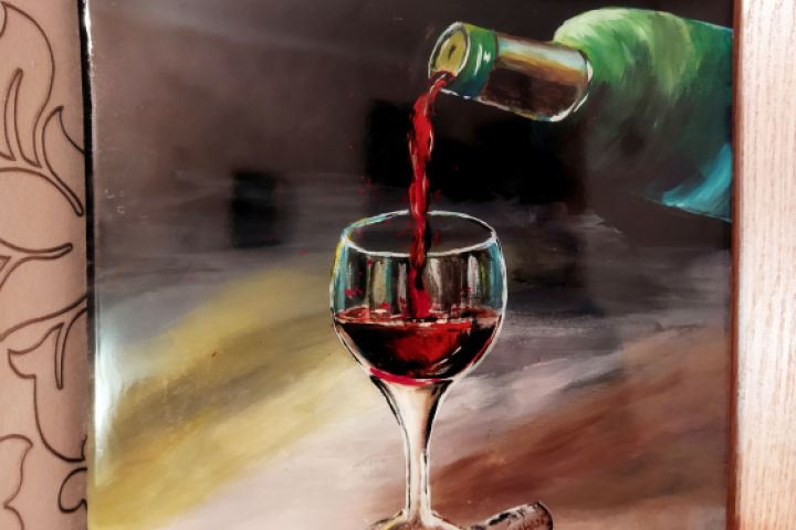Картина с бокалом, покрыта эпоксидной смолой