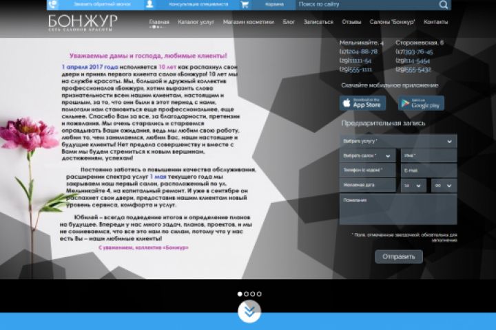 Разработка портала для сети салонов красоты
