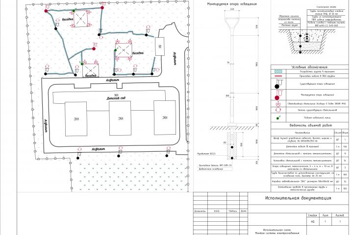 Пример исполнительной схемы на монтаж системы наружного освещения