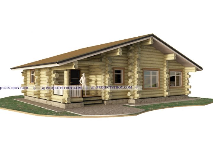 Одноэтажный дом в диком срубе 12.7 х 12.5 Проект из бревна 280-320 мм, средним диаметром 300 мм