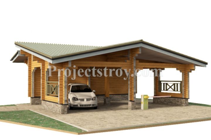 Навес для двух автомобилей из бруса 140х(h)140 мм