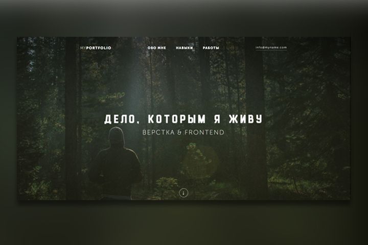 Минимизированный Landing Page. Моя жизнь - Frontend. Технологии: HTML5, CSS3.