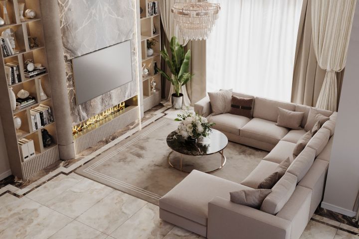Семье, для которой был сделан проект интерьера этого дома, нравится современная классика в светлых оттенках с её роскошью, гармоничностью и элегантностью. Чтобы удовлетворить пожелания клиентов в проекте использовались классические объекты дизайна интерьера с элементами ар-деко. Основной акцент сделан на светлую, нейтральную палитру с мягкими бежевыми, кремовыми и кофейными оттенками, создающими атмосферу уюта, роскоши и спокойствия. Интересные фактуры, благородные материалы и продуманный декор подчеркивают статус и эстетику пространства.