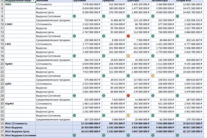 3. В настройках сводной таблицы воспроизведены настройки полей, условного форматирования и т.д.