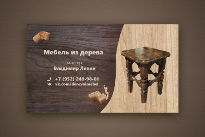 Необходимо было создать креативную визитку для мастера по дереву.