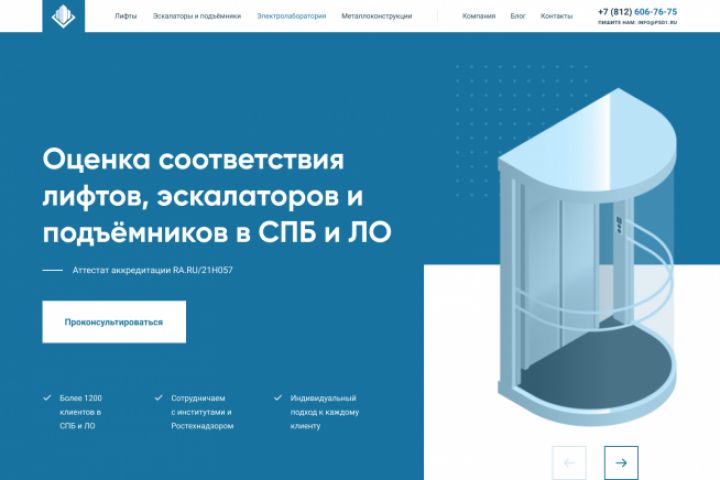 Верстка многостраничного сайта компании ООО «ПРОМСТРОЙДИАГНОСТИКА». Ссылка на сайт на моем хостинге: https://site02.zaryaweb-portfolio.site