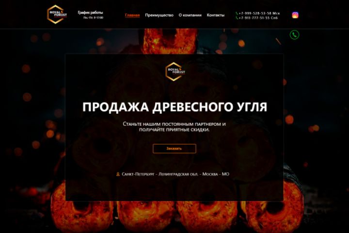 Верстка одностраничного сайта из psd-макета для компании "Royal Forest".