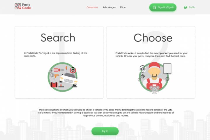 Верстка одностраничного сайта "Part Code" по макету из PSD для автомобильного сервиса.
